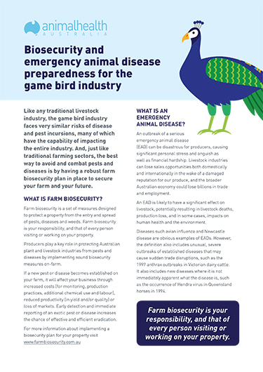 For the alpaca, duck and dairy/fibre goat industries, visit the species-specific industry pages on the Farm Biosecurity website for further information.